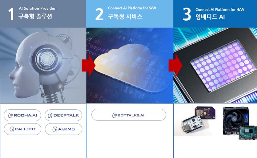- 구축형 AI 솔루션(SONA CHAT)를 시작으로 국내 최초 클라우드형 AICC(SONA WORK)를 운영